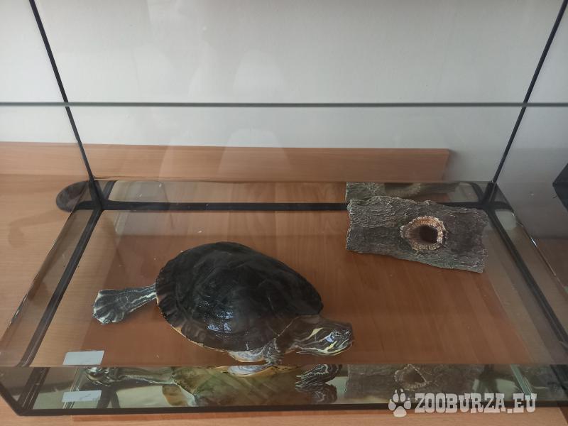 Popis: Predám vodnú korytnačku aj s akváriom, krmivom, kameňom a UV žiarovkou. Rozmery akvária: dĺžka 60cm x šírka 30cm x hĺbka 35cm. Predajná cena: 60€, osobný odber Bratislava. Možnosť zakúpiť korytnačku aj osobitne za 30€.